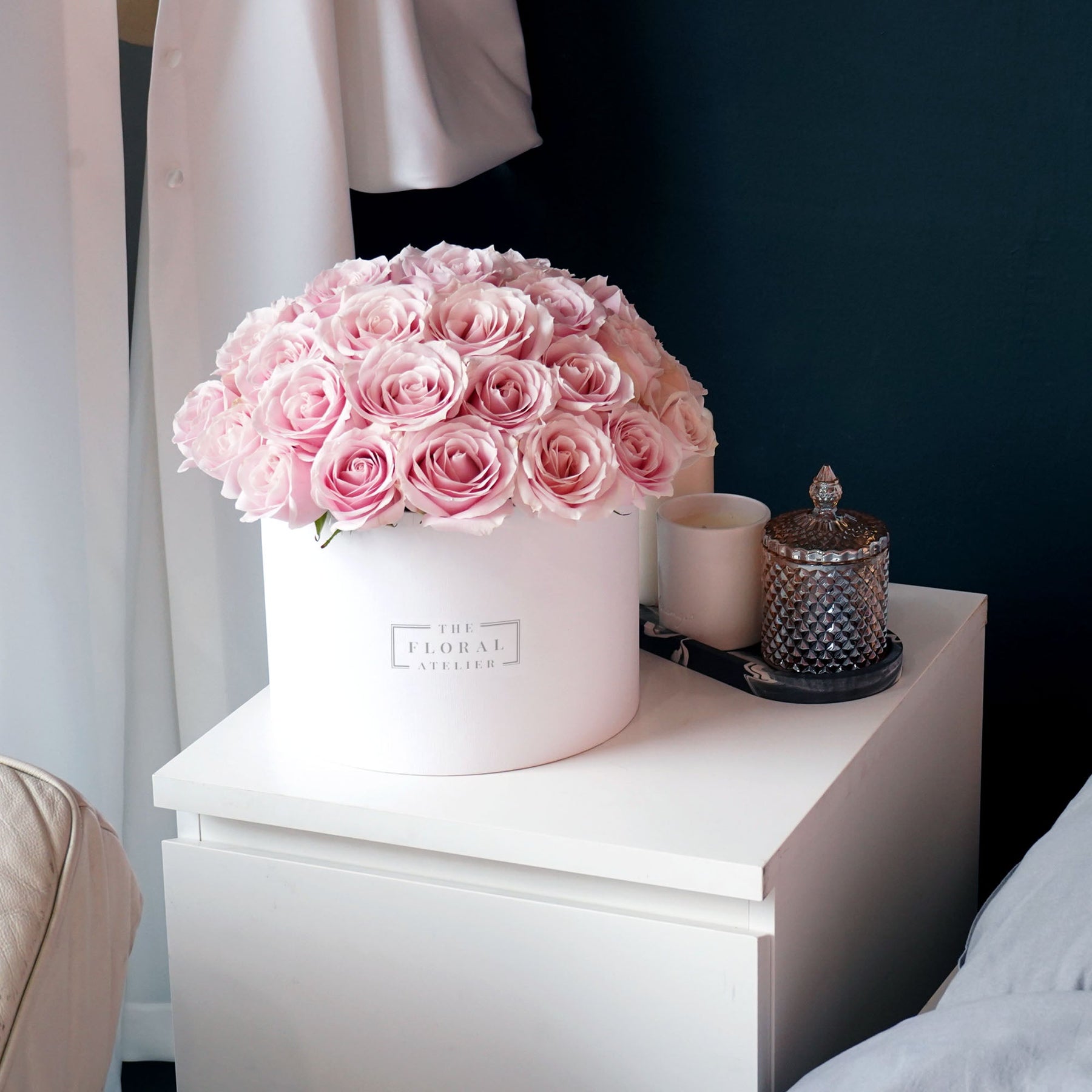 Specially curated and individually selected premium soft-pink roses are expertly sculpted and crafted to reflect architectural design elements such as clean lines and forms. Modern. Elegant. Luxury. Beautiful. Our Pink Modern Bloom Box draws inspiration from the exuberance and innocence of a budding romance. Luxury, Beauty, and Exceptionally created in Singapore.