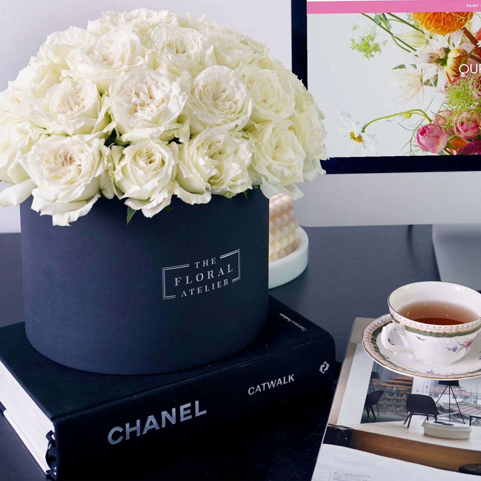 Specially curated and individually selected premium pristine white roses are expertly sculpted and crafted to reflect architectural design elements such as clean lines and forms. Chic. Modern. Elegant. Beautiful. Our White Modern Bloom Box draws inspiration from the purity and majesty of an idealist and achiever. Luxury, Beauty, and Exceptionally created in Singapore.