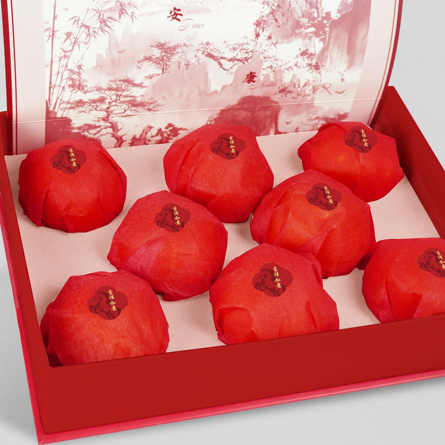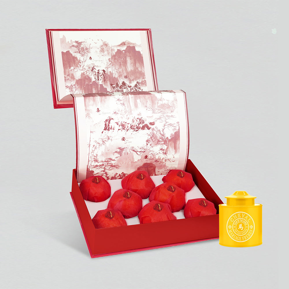 Curated for the season, this set features eight auspicious mandarins representing Prosperity, Health, and Fortune. The unveiling reveals our exclusive Fire Horse (赤马) Limited Edition design, capturing the raw energy and momentum of the New Year. It is a thoughtful detail that radiates Wealth and Good Fortune, ensuring your gesture of well wishes leaves a lasting impression.