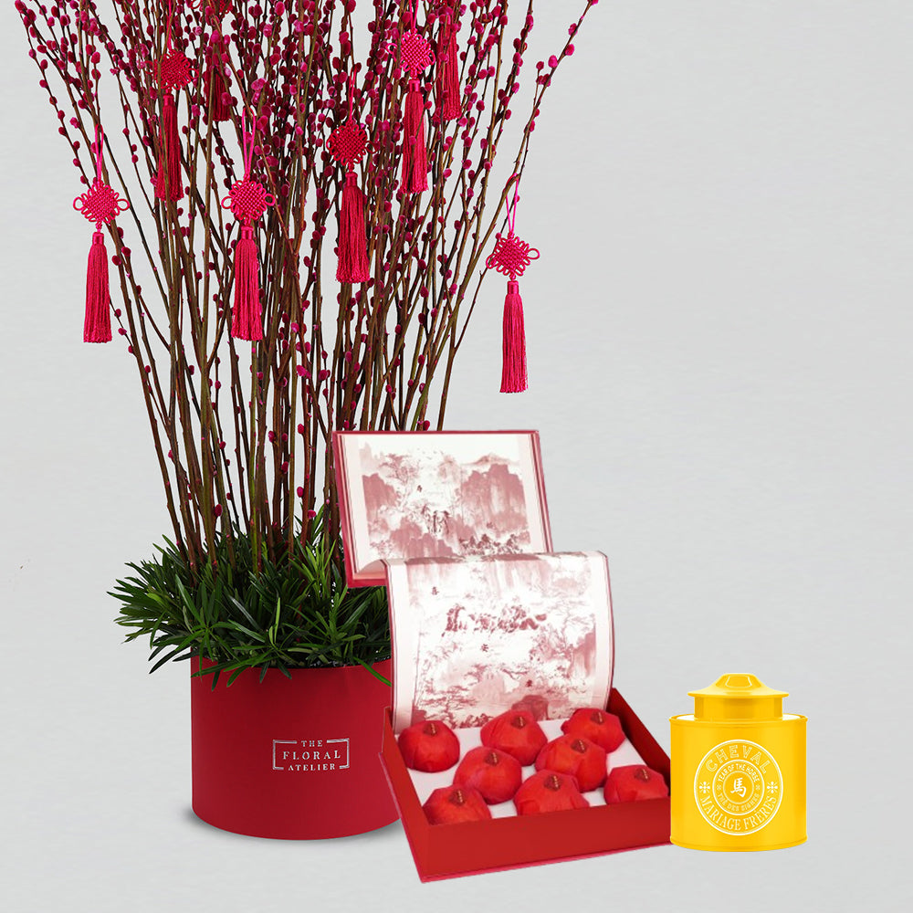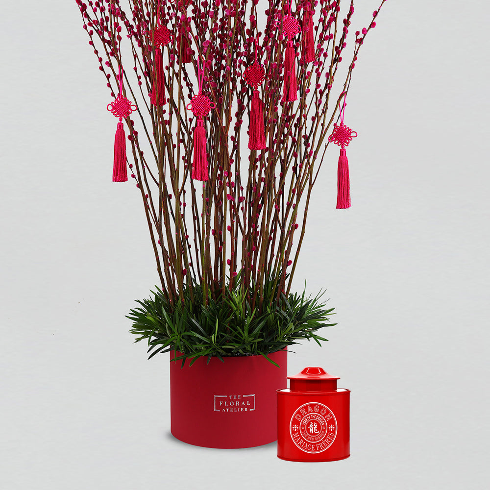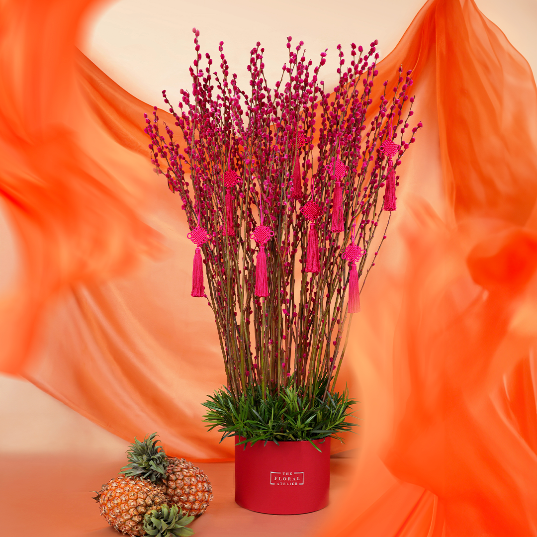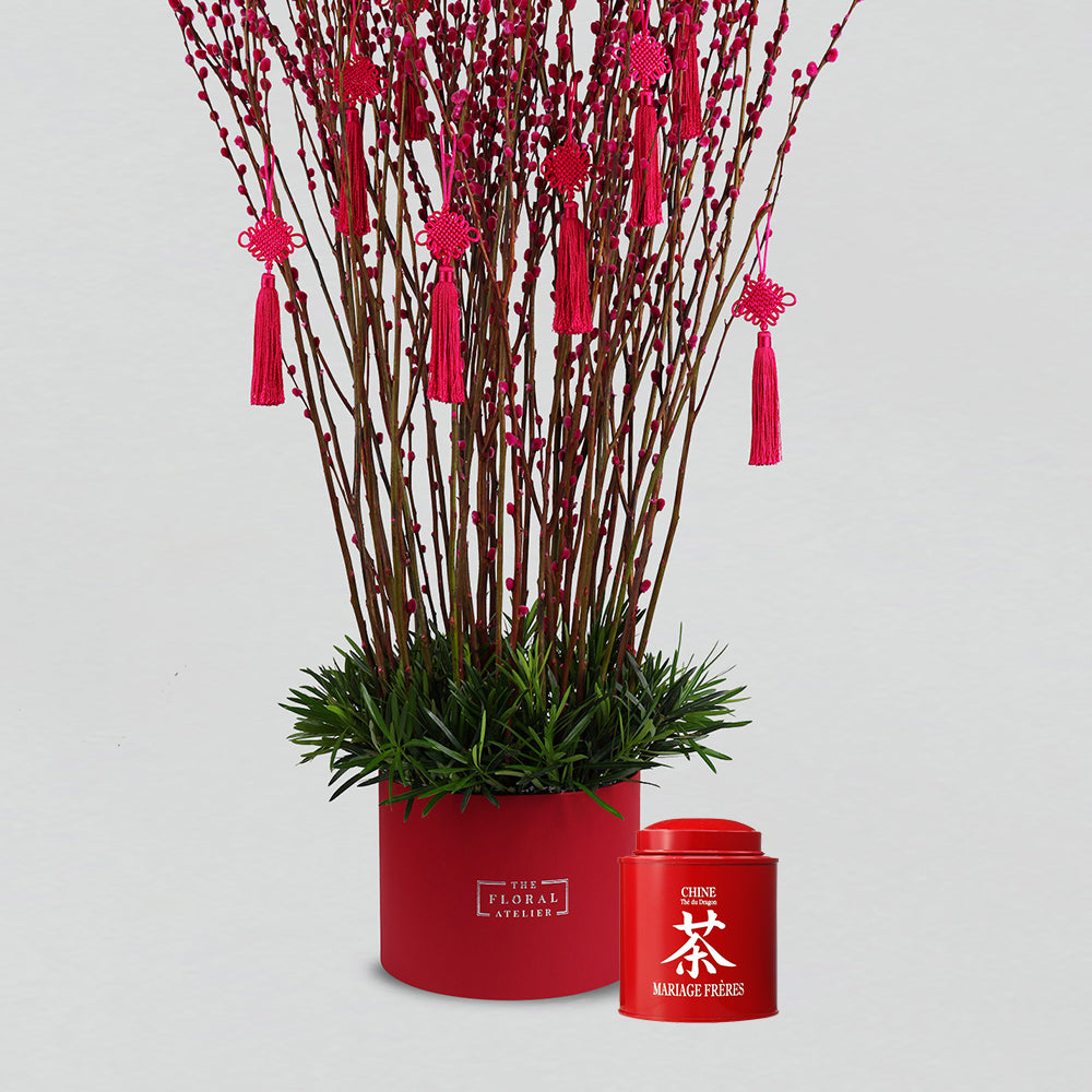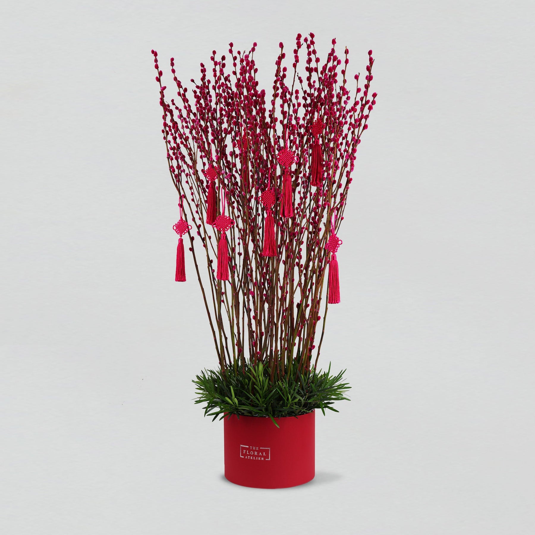 Celebrate the Year of the Fire Horse with an arrangement that embodies its spirit, energy, and elegance. The Prosperity Willow Bloom Box is an expression of festive sophistication, designed to capture the optimism and forward momentum of the Fire Horse. Featuring powerful and enduring deep red-hued willows, a time-honoured symbol of Vitality and Good Fortune.