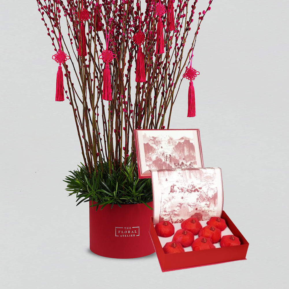 Packaged in our signature red bloom box, this auspicious composition represent the momentum of growth, the energy of progress in the year ahead, and symbolic of Wealth, Fortune, and Longevity for your home or office. It is the ideal gift for sending well-wishes to family, strengthen ties with clients, and conveying a sincere wish for a year of strength and prosperity to those who matter to you.
