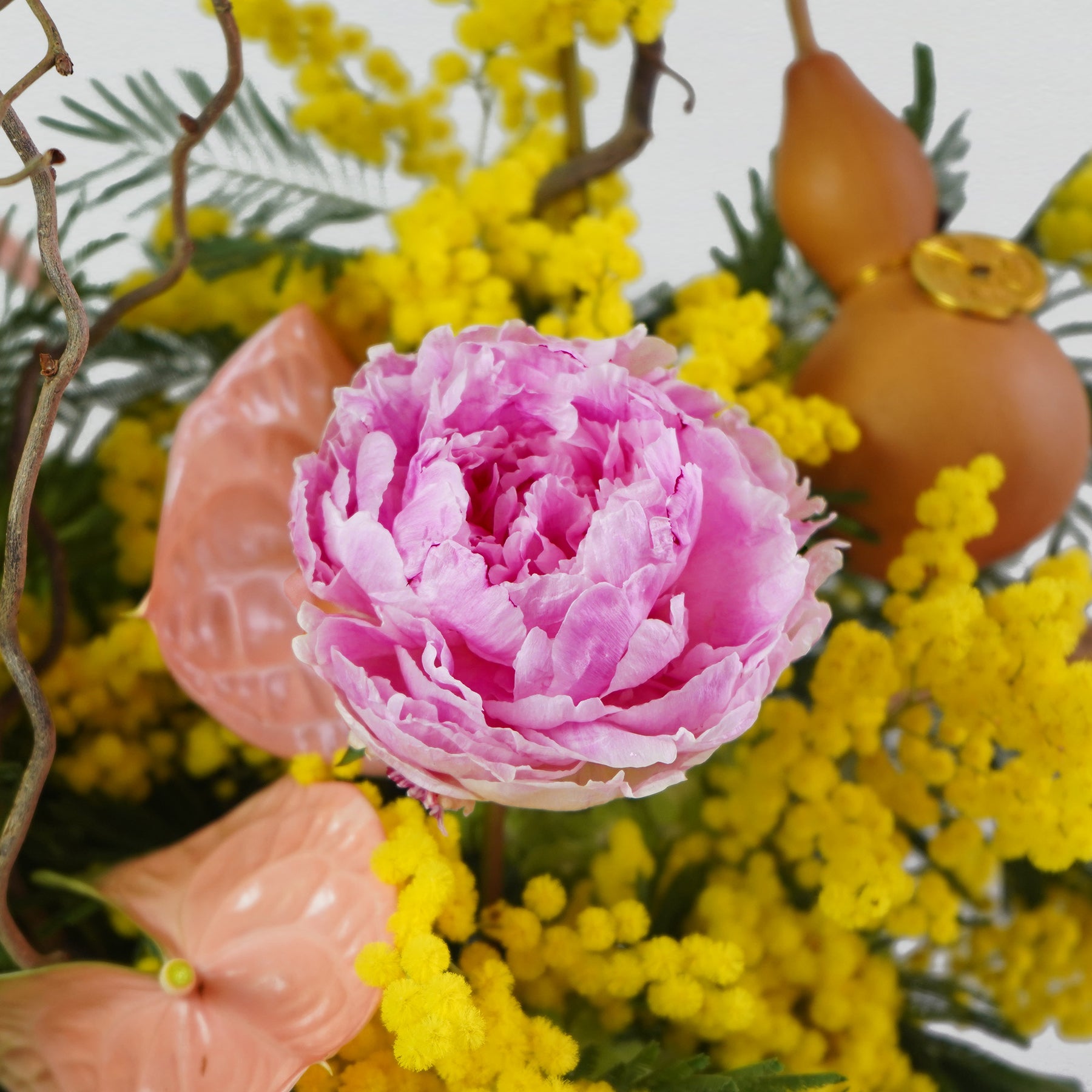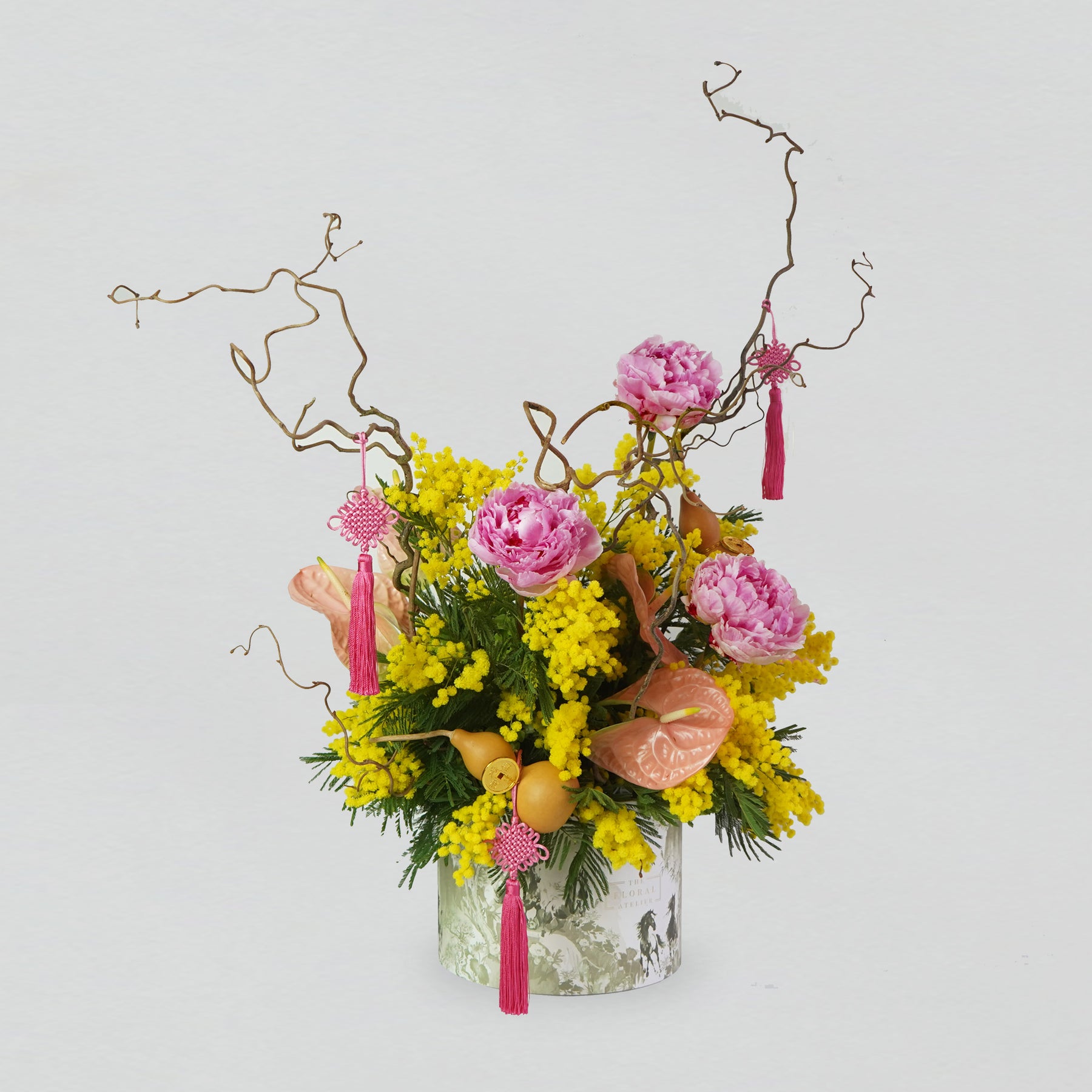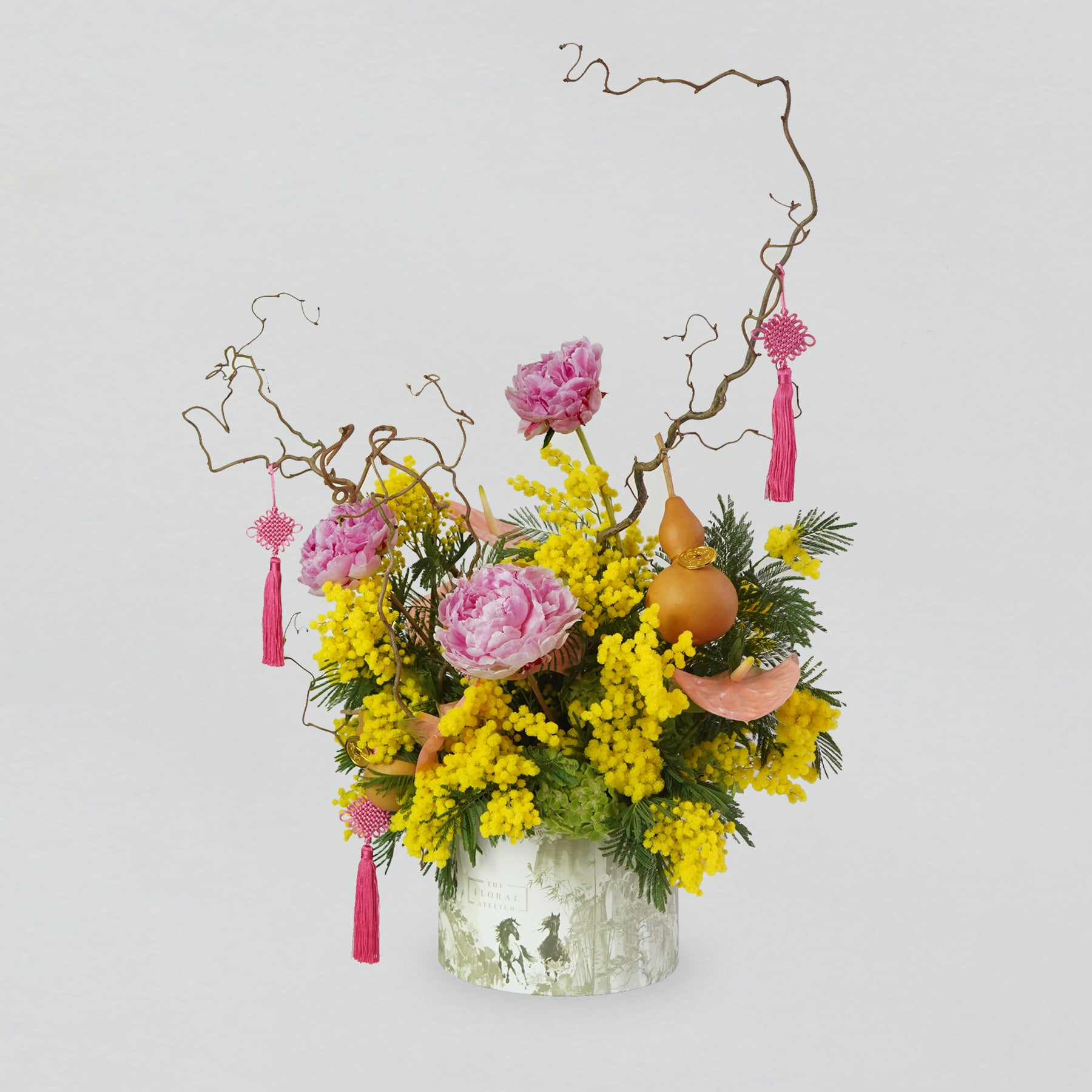 Celebrate the Lunar New Year with the Radiant Fortune Bloom Box, a brilliant display of vibrant pink Peonies and magnificent Dragon Willows, elegantly presented in our bespoke Jade Horse (玉马) Limited Edition bloom box. The Peony, often featured in Chinese art and design, symbolises Wealth, Beauty, and Prosperity. This extravagantly auspicious gift is symbolic of sending Good Fortune and Prosperity to your loved ones this Lunar New Year.