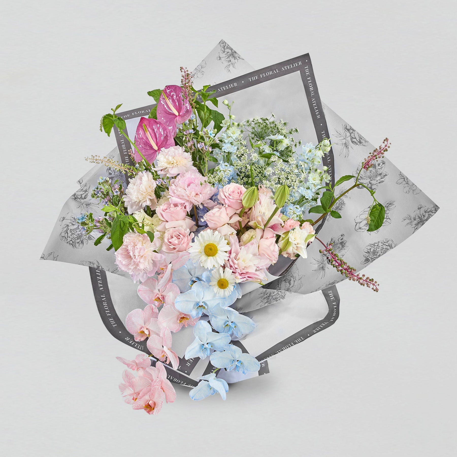 Discover the Ingenue Master Series Bouquet, a charming embodiment of sophisticated elegance and timeless beauty. This exquisite overflowing arrangement features a harmonious blend of premium seasonal blooms in a complementary palette of pink, white and blue tones. The Ingenue Master Series Bouquet captures the essence of innocent beauty, sophisticated luxury, and exceptional floral craftsmanship.