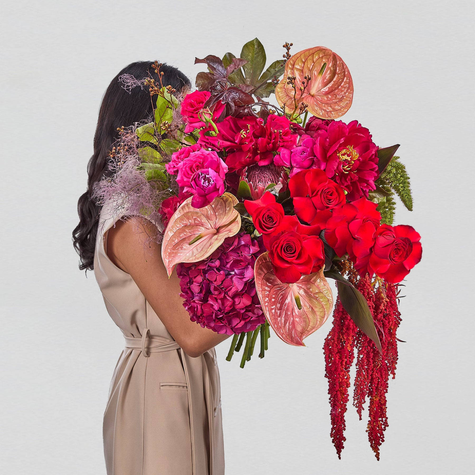 Passion. Desire. Unbridled longing. The Lover Master Series Bouquet is designed to captivate, impress, and set the mood. Featuring curated premium florals with stunning palette of deep red and pink tones, this bouquet amplifies your true feelings and leaves no doubt of your intentions.