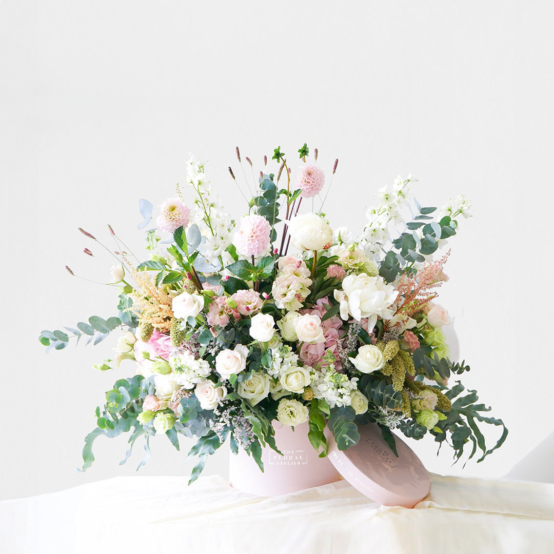 Experience the finest floral craftsmanship by our Master Florist. Each Master Series arrangement is a one-of-a-kind creation, personalised according to your story and occasion. It features our best-in-class craftsmanship, handpicked seasonal premium flowers, beautifully framed in our signature Bloom Boxes.
