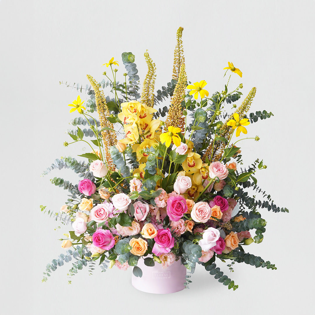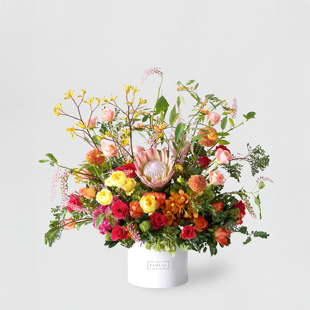 Experience the finest floral craftsmanship by our Master Florist. Each Master Series arrangement is a one-of-a-kind creation, personalised according to your story and occasion. It features our best-in-class craftsmanship, handpicked seasonal premium flowers, beautifully framed in our signature Bloom Boxes.