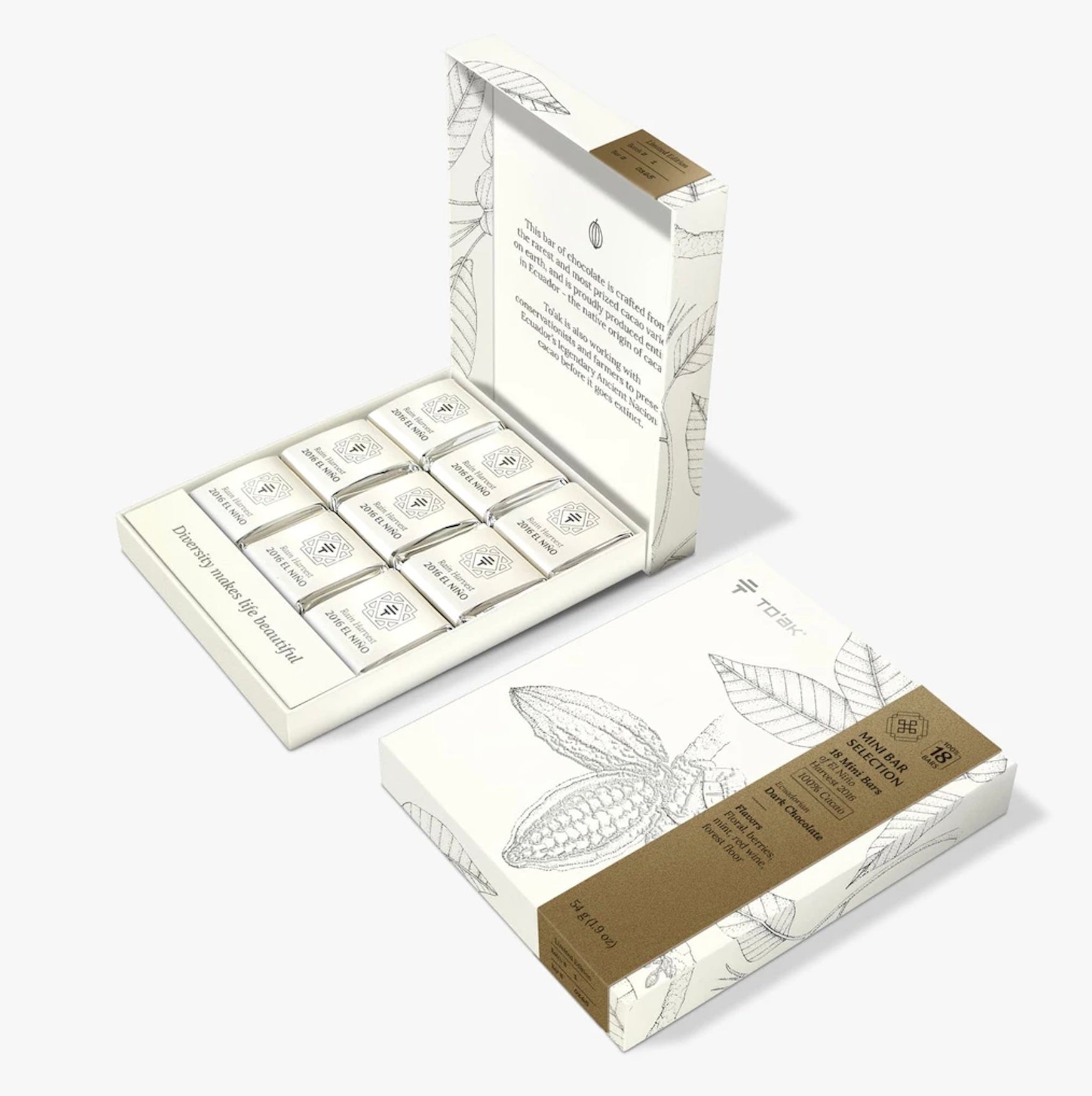 PROFILE: A seasonal selection of pure 100% chocolate bars from a specific harvest year (18 mini bars in total).