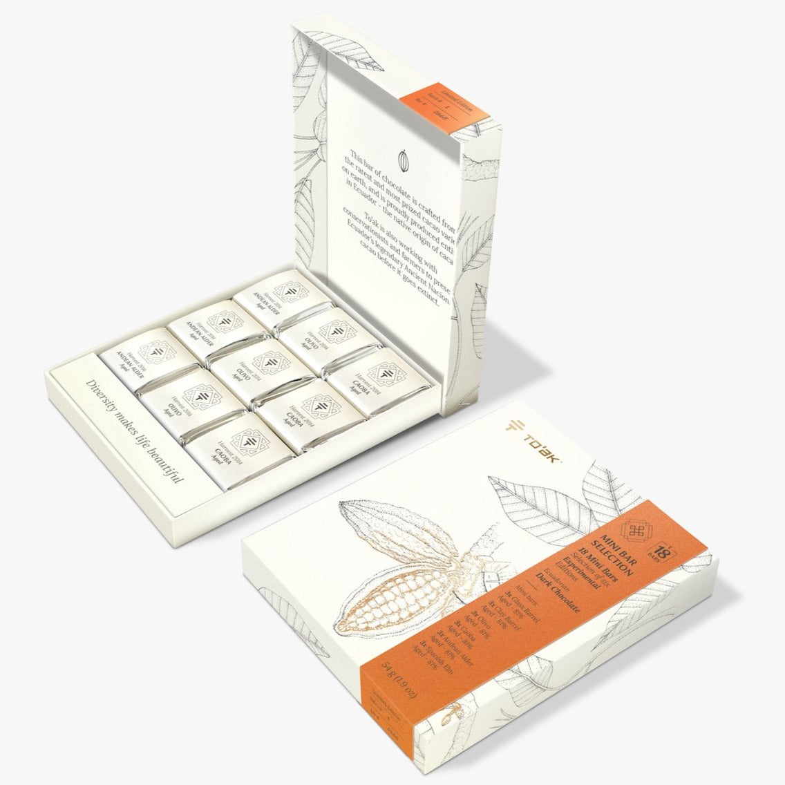 PROFILE: A seasonal selection of pure 100% chocolate bars from a specific harvest year (18 mini bars in total).