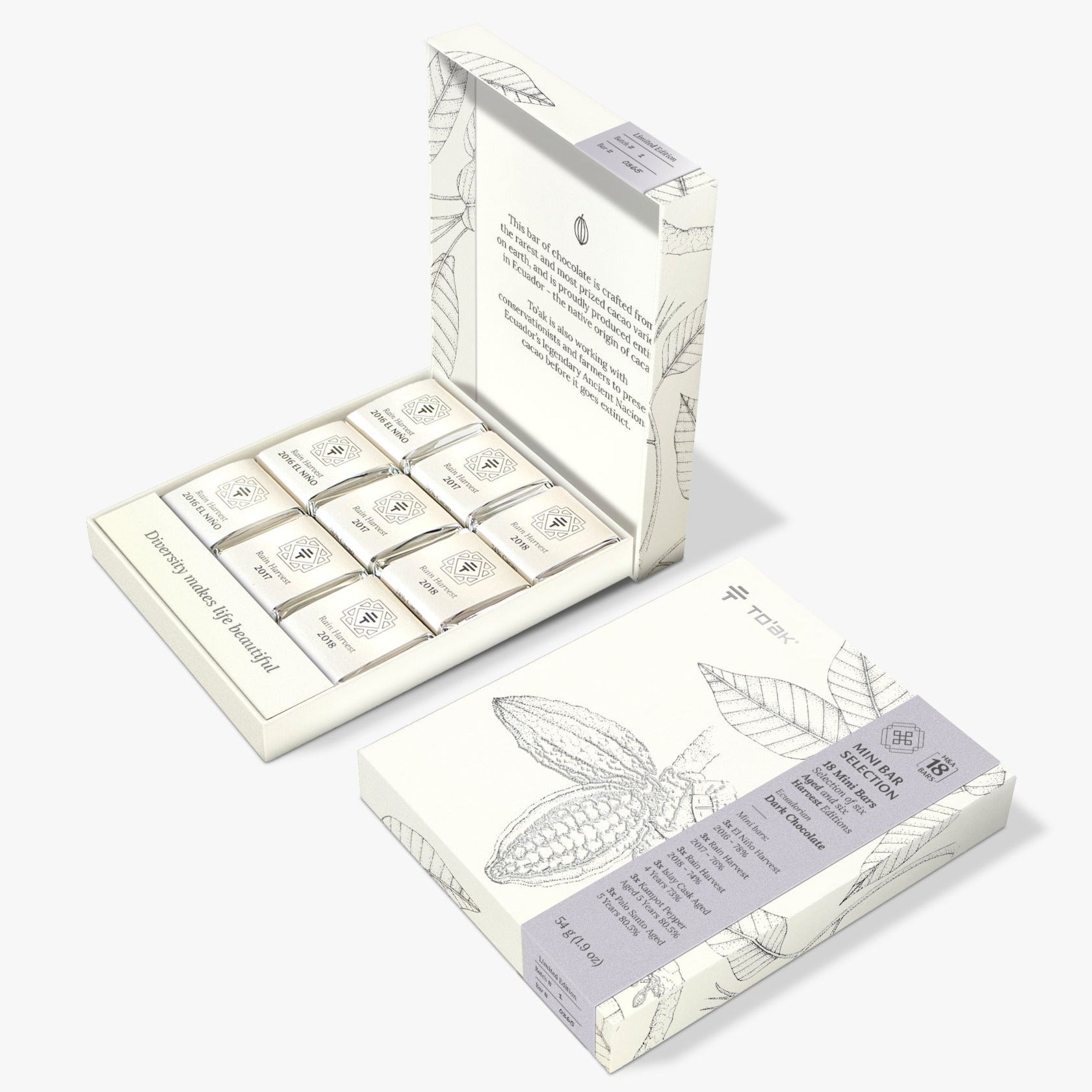STORY: Sample the full universe of To’ak Chocolate, with mini bars from three different aged editions as well as three different harvest years. Combine a vertical chocolate tasting with a journey through our distinct aging styles, from stunningly aromatic Ecuadorian wood to specialty casks from across the world.